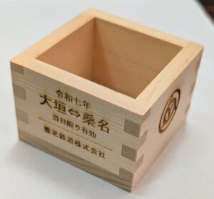 ご提供する日本酒は、江戸時代や明治時代に創業した、養老鉄道沿線の歴史ある酒蔵が醸した逸品です。全国シェア約8割を誇る大垣市の特産品・木枡でお出ししますので、ひのきの香りがほのかに漂い、日本酒の味わいを一層引き立てます。